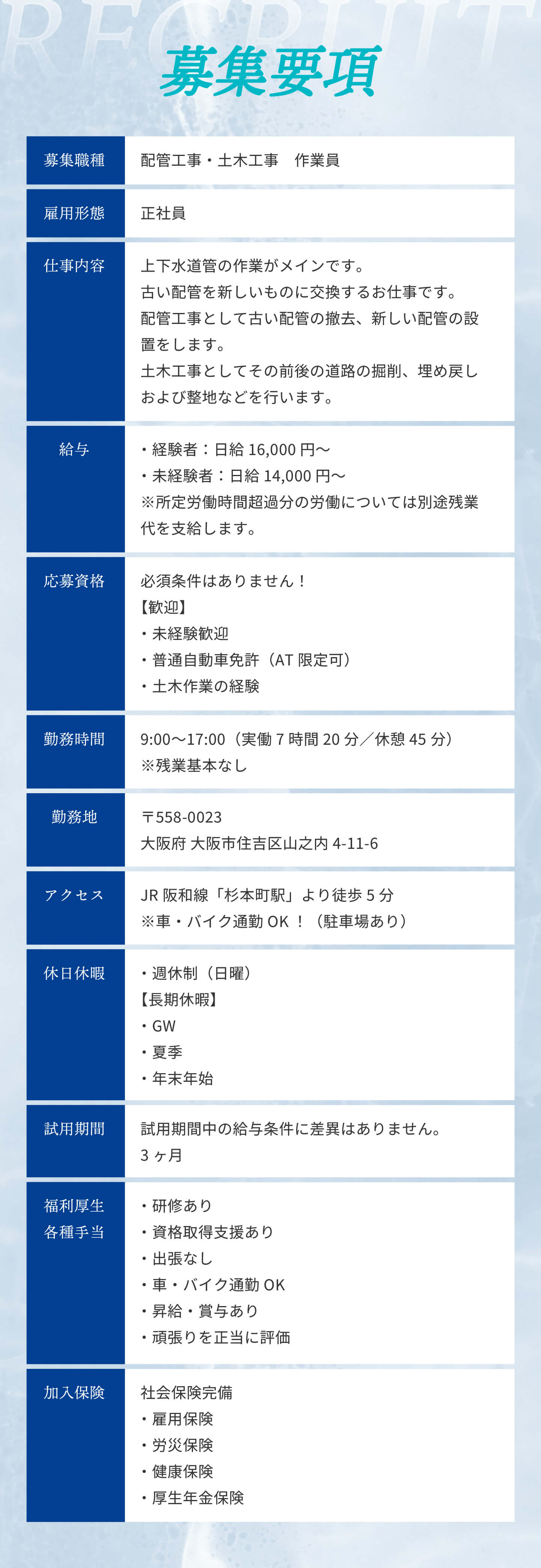 | 事業内容 | 配管工事、土木工事 |